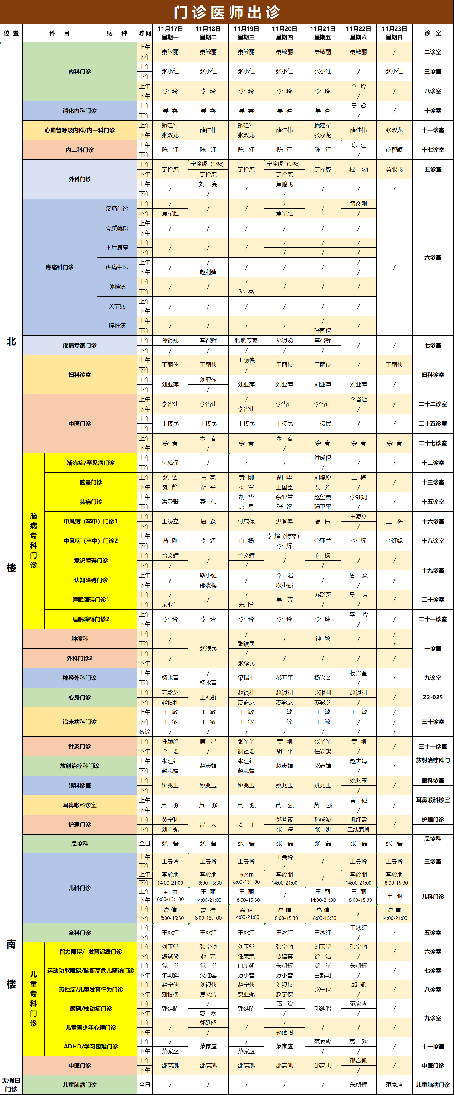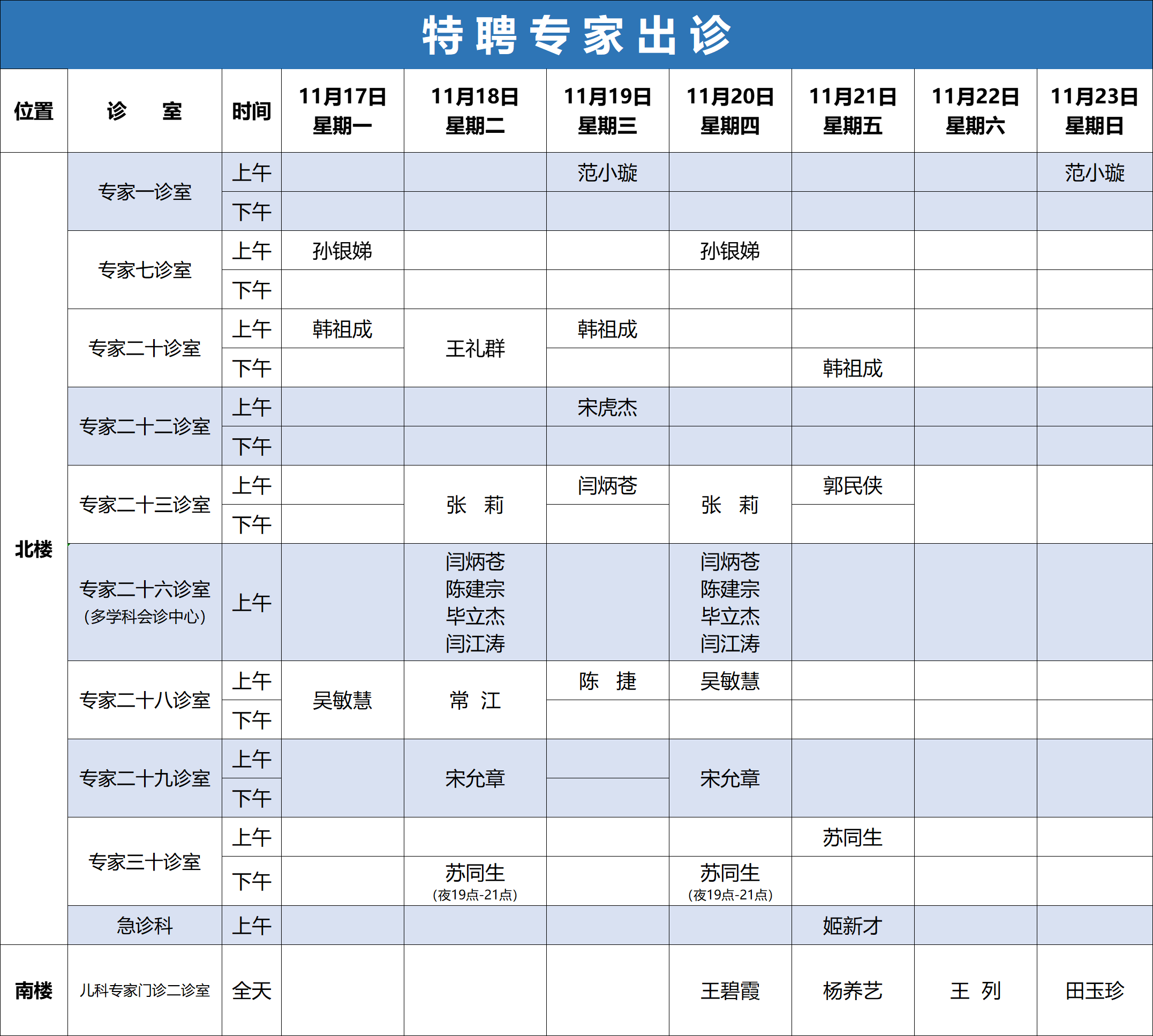 专家出诊表